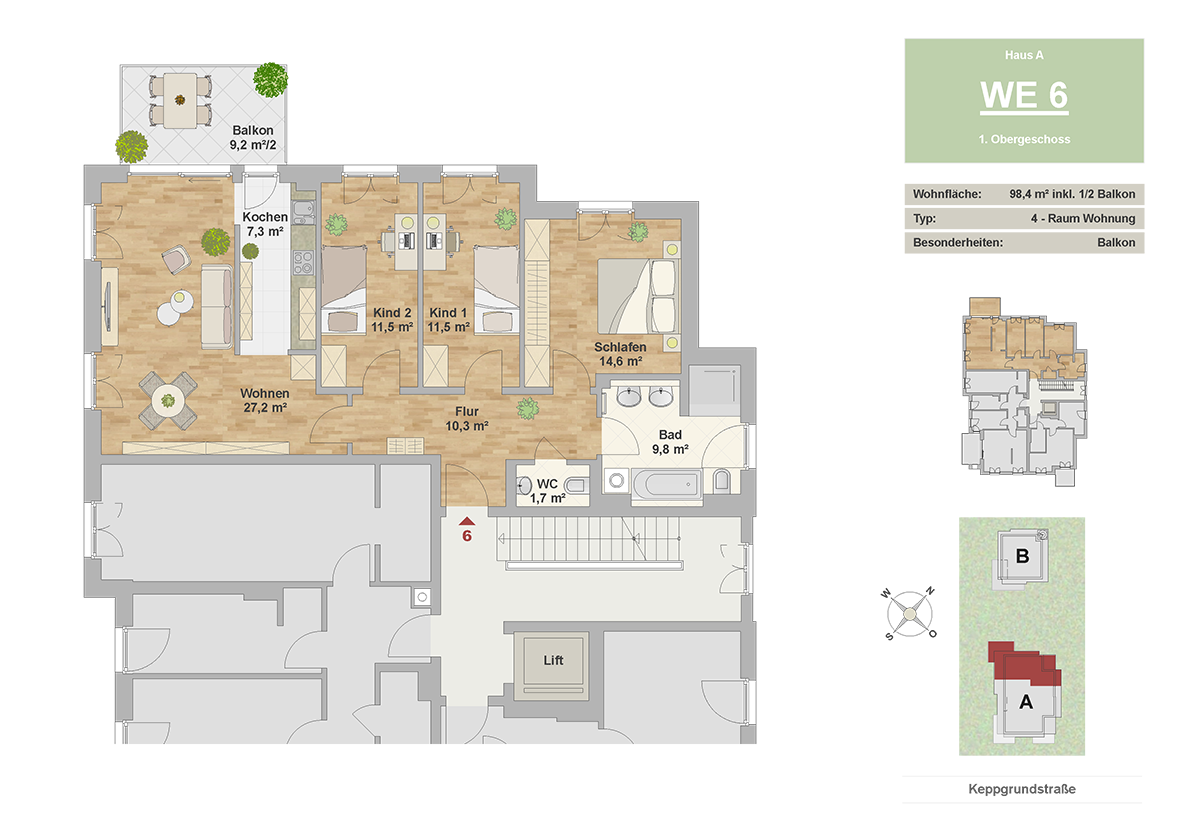 Die USD Immobilien GmbH baut zwei elegante Wohnhäuser auf einem großzügigen Grundstück von 2740 m². Die modernen Gebäude werden harmonisch mit der Umgebung verschmelzen und bieten großzügig geschnittene 2- bis 4-Raumwohnungen mit einer Wohnfläche von 48,6 m² bis 114,9 m² und neuester technischer Ausstattung.
